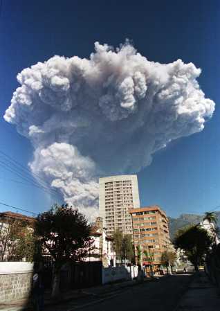 Das Problem hierbei ist weniger, daß die Millionenstadt Quito unter einem Strom heißer Lava versinken würde (die Lava wird wahrscheinlich nach "hinten", zur anderen Seite abfließen), sondern vielmehr daß ein Staub- und Ascheregen Strassen und Flugplatz unbenutzbar machen könnte.